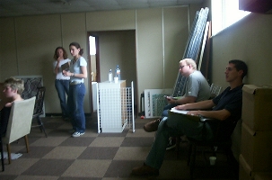 Our last day of rehearsals - Paul and I are worried as we're going to be late because of a very bad tailback around Lightwater, but as it happens Tom needs us to go via his as he can't get the futon (for the set) in his car. Between the two cars we manage it.