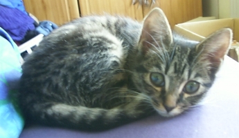 Two months after this they've weaned him and he's getting a little boisterous for a little flat in Brixton, and they're not really supposed to have a cat anyway. So he's coming to live with us and our three other cats.