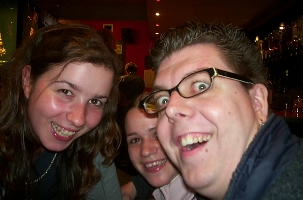 Then on with Noel to Brian Damage's other gig at the Fiscal - small audience but good comics. Brian tells a good joke which I must tell my Dad at some point - he'll like it. About a skeleton going into a bar. Brian does all his "greatest hits" including "Country Boy" and "Bunch of..." Manage to surreptitiously read my e-mail during the gig - the wonders of modern technology. Krystal (Brian's usual beautiful assistant) is not at the gig today and he's giving us a running commentary on what she would be doing in the songs if she was there... but she wasn't. Harriet Bowden is here too, laid out on a sofa as she's not feeling well. Looks nice and cosy.